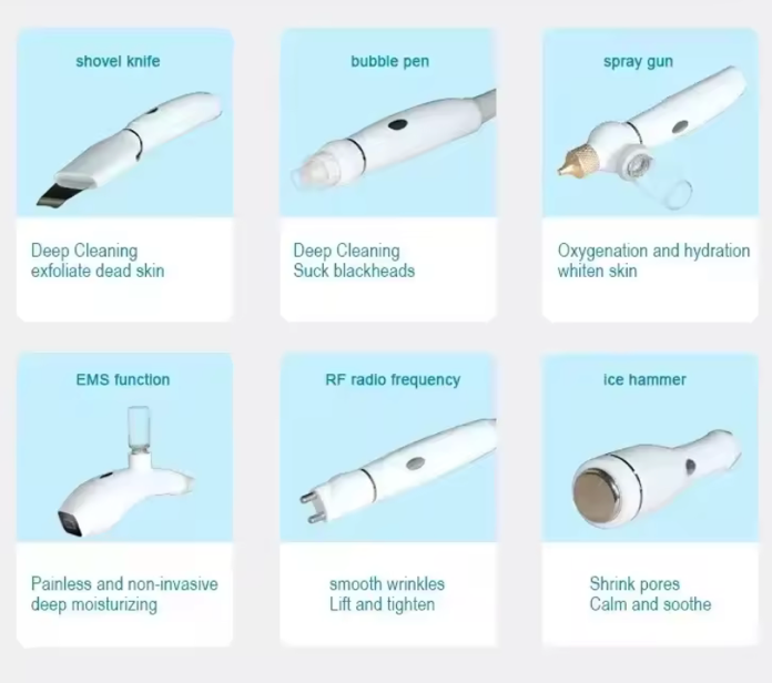 Combina facială HydroComb 6in1 este un echipament estetic multifuncțional ce integrează tehnologia H2-O2 și șase funcții avansate pentru curățare profundă, hidratare intensă, lifting și rejuvenare facială. Cu funcții precum EMS, microdermabraziune cu apă, cavitație, infuzie de oxigen și ciocan rece, aparatul redă luminozitatea și fermitatea pielii încă de la prima utilizare. Potrivit atât pentru saloane, cât și pentru tratamente acasă, asigură rezultate vizibile fără iritații sau disconfort.